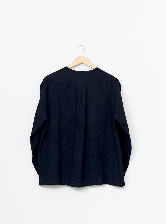 Long Sleeve Camp Collar Shirt in Paper Compact Cotton - Chalk