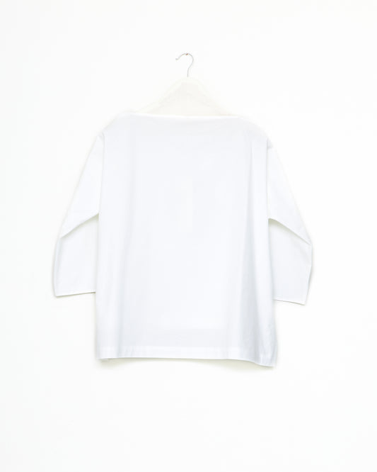 Straight Neck Top in Compact Paper Cotton - Chalk