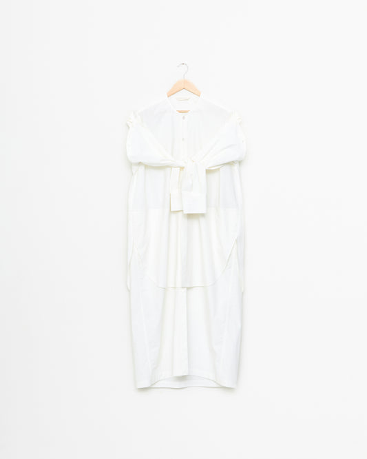 Hand Tie Shirtdress in Paper Compact Cotton - Chalk