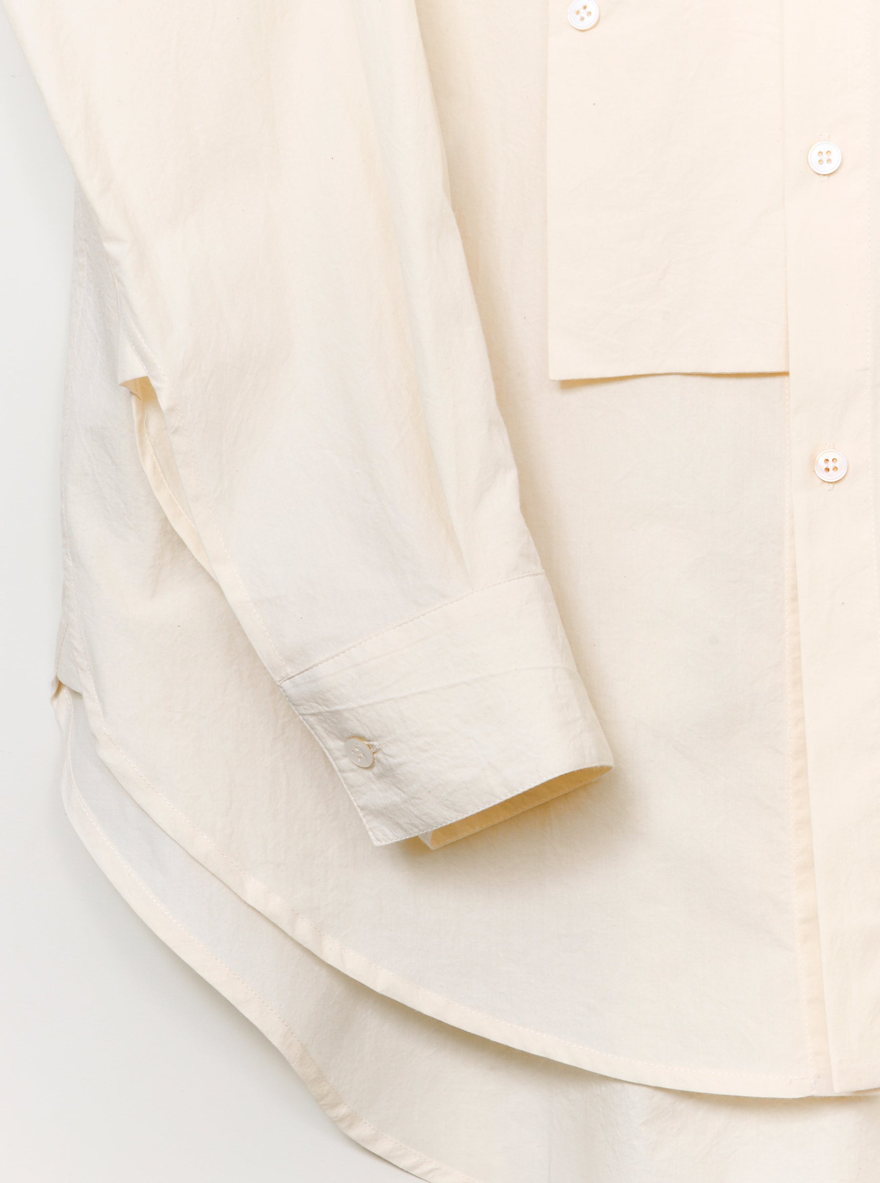 Unisex shirt, the Beaduc features a simple chest panel with a single button at the top corner. Worn inside or outside of the garment, it creates an extra layer of warmth across the chest. The collar can be worn down or fastened up around the neck with a single button.