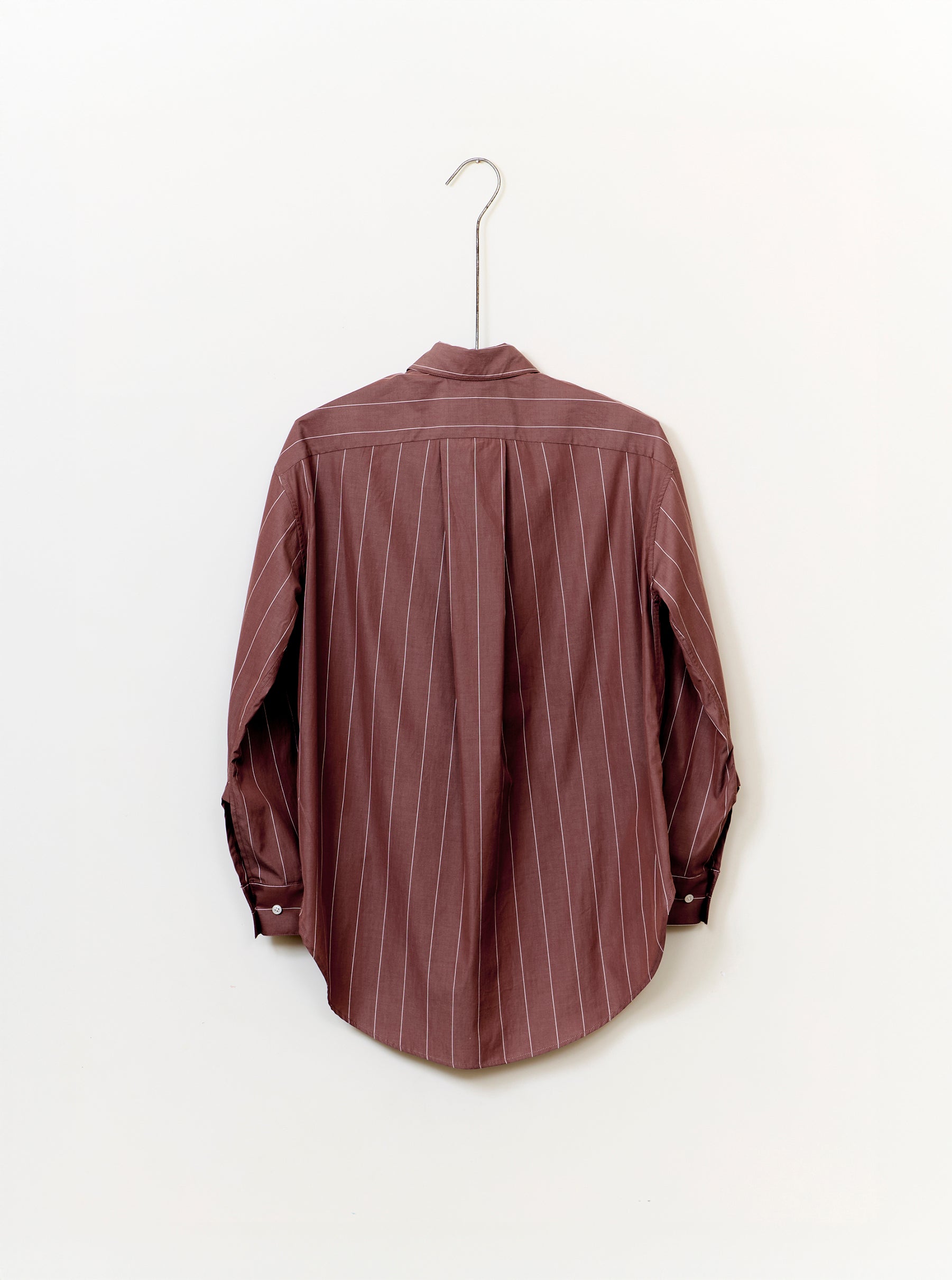 Unisex shirt in fine stripe, the Beaduc features a simple chest panel with a single button at the top corner. Worn inside or outside of the garment, it creates an extra layer of warmth across the chest. The collar can be worn down or fastened up around the neck with a single button.