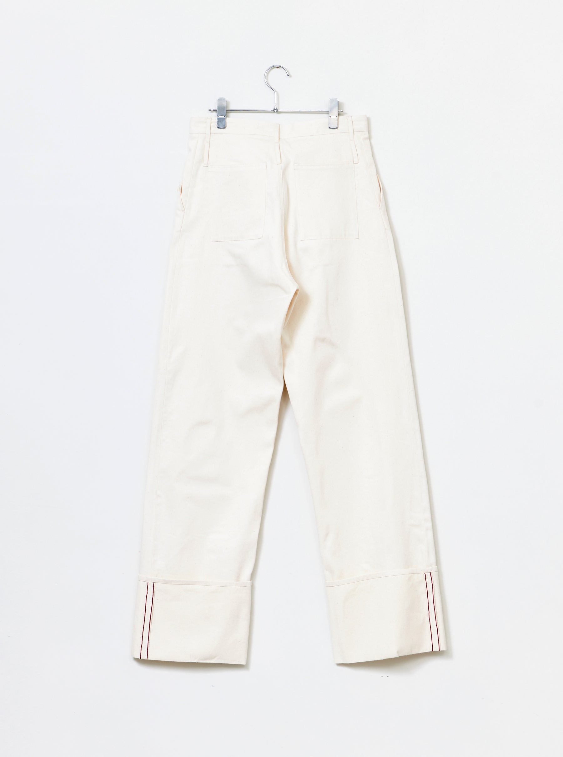 A relaxed straight leg Jean with generous hem fold up with selvedge edge detail on outer side seam.