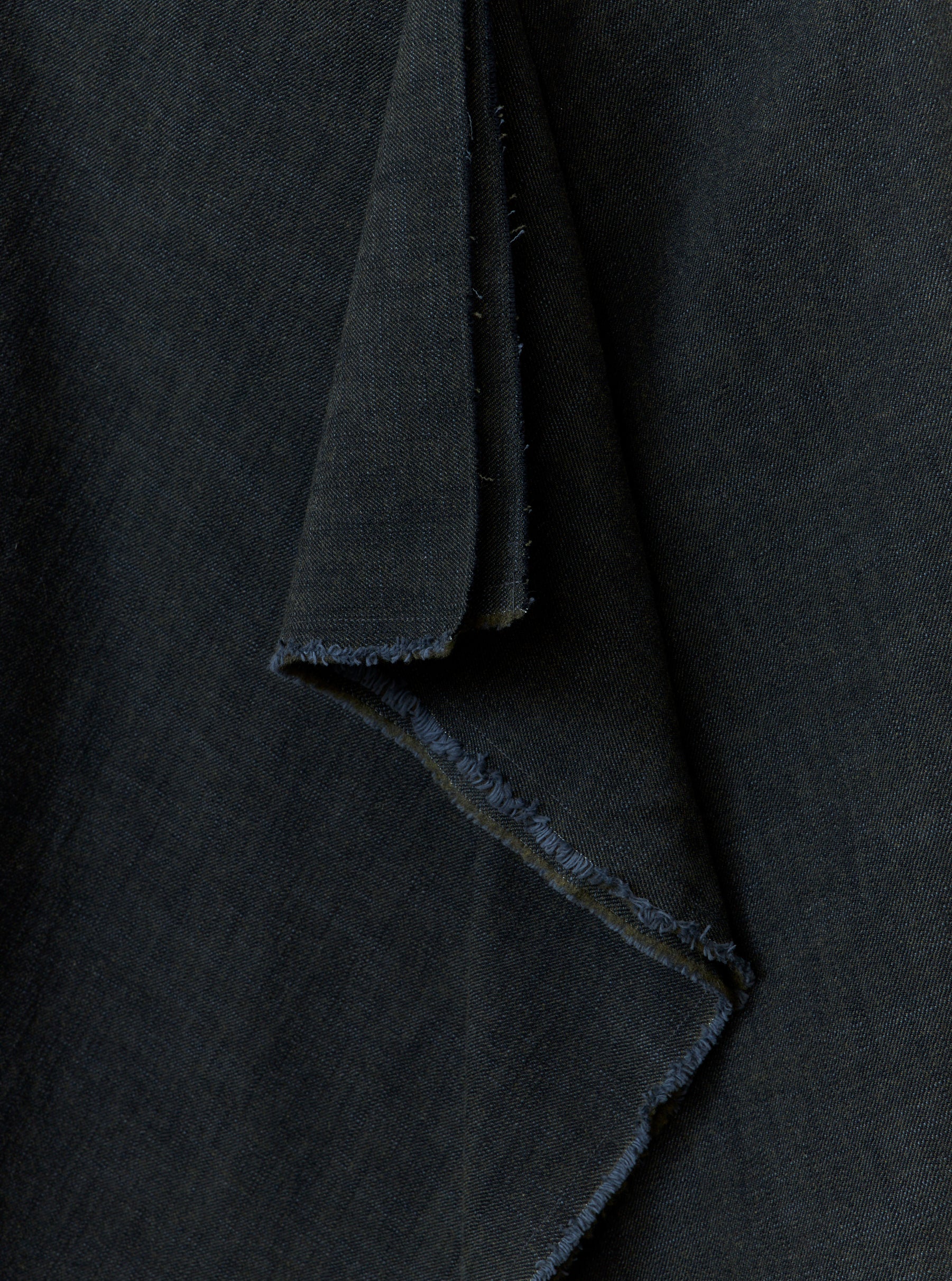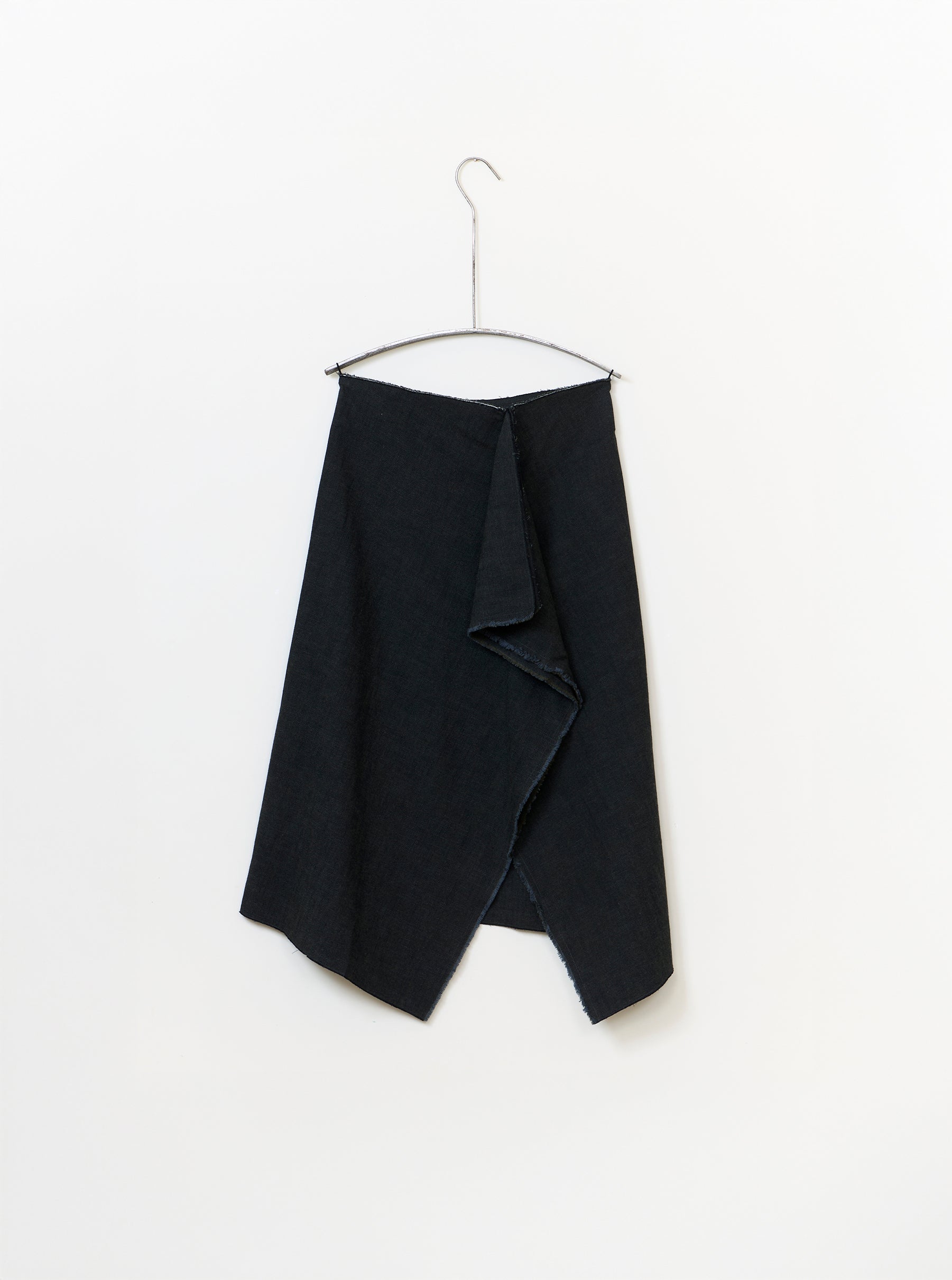 A draped front skirt with concealed front zip opening. The Kleve Skirt in Alga Green incorporates the selvedge edge for zero waste.