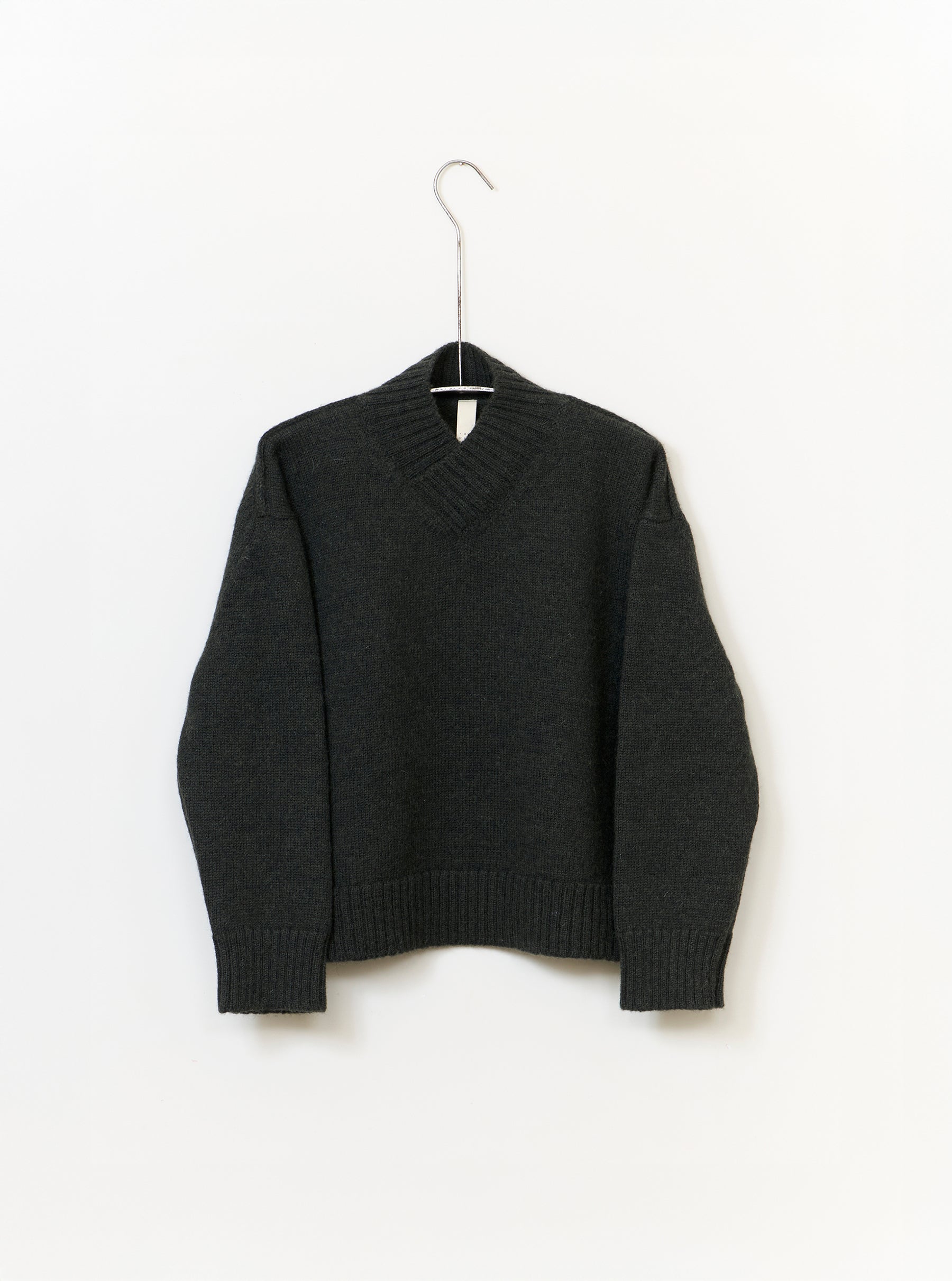 Based on our core knit block, the Krefeld Jumper has been updated for the season featuring a deep rib grown on shawl collar with rib on the hem and sleeves.
