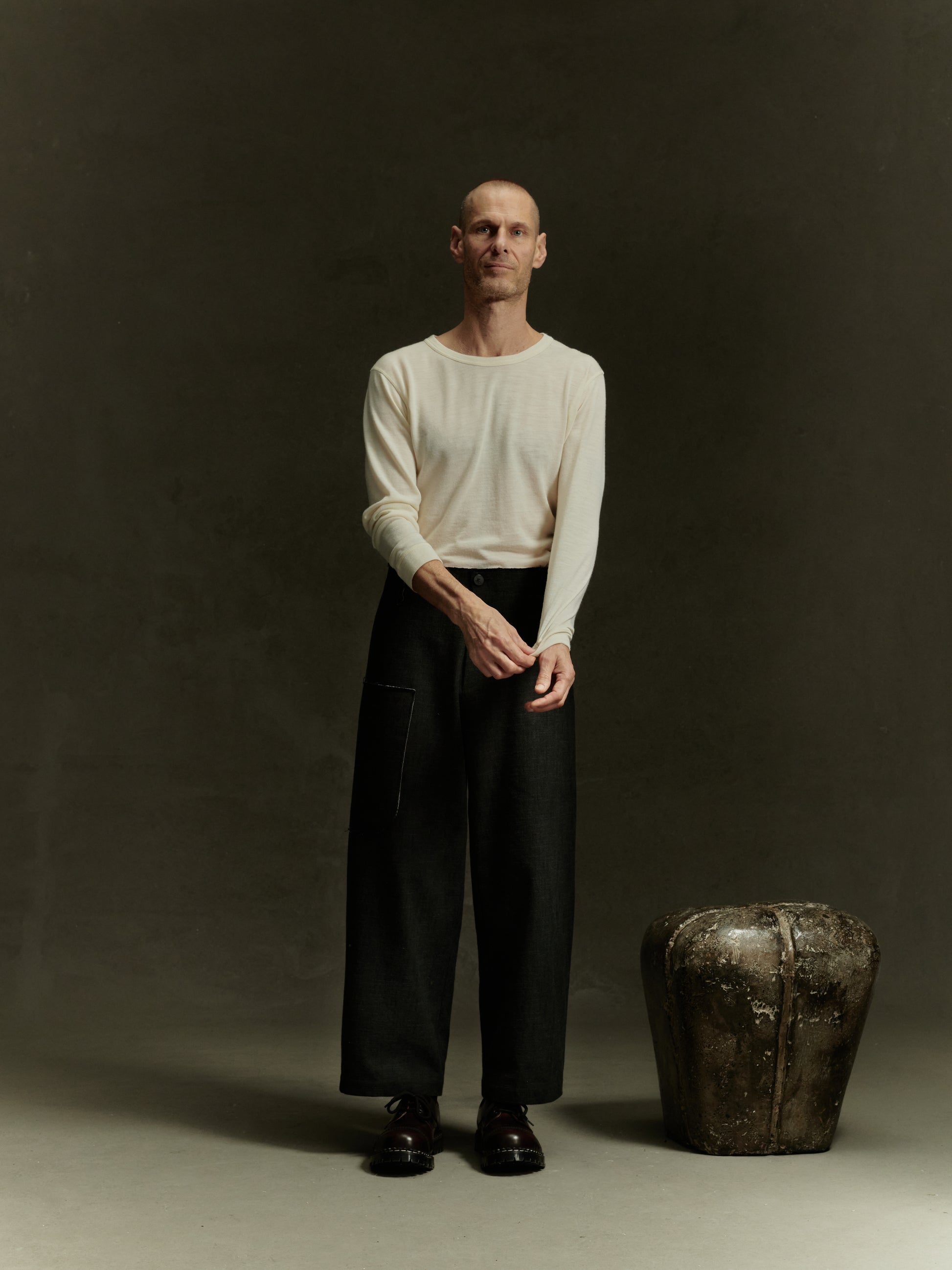 Vest made from Merino wool featuring long sleeves with on rib on sleeve cuff and neck.
